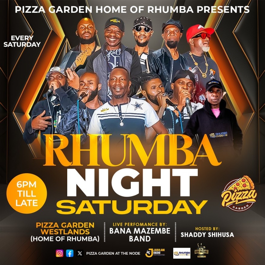 This is a recurring weekly event dubbed "Rhumba Night," held every Saturday evening in Westlands. It features live music from the renowned Bana Mazembe Band and is hosted by popular radio personality Shaddy Shihusa. The event is a collaboration between Pizza Garden (the "Home of Rhumba"), Jabulani Radio, and Rhumba Overdose.